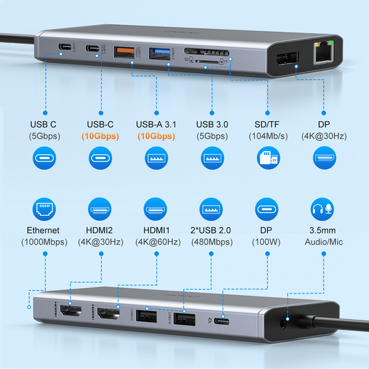 USB C Laptop Docking Station Dual Monitor HDMI for Dell/HP/Lenovo Laptop USB C Hub Multiport Adapter Dongle Dock,USB C to 2 HDMI+DisplayPort DP+Ethernet+100W USB C Power Charging Port+5USB+SD/TF+AudioVendor:VVBRegular price $69.99 USDRegular priceUnit price / per$109.99 USDSale price $69.99 USDSale